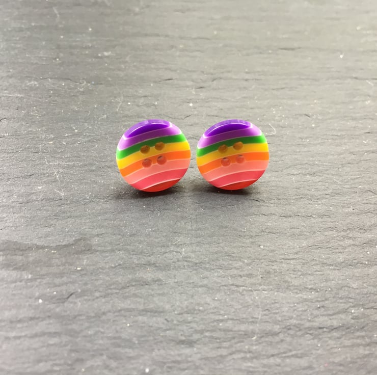 A kitsch and fun pair of earrings made from the most gorgeous selection of resin buttons in every shade of the rainbow. Eight different designs are available. Why not collect them all?