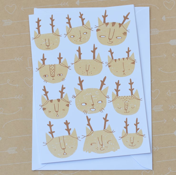 Each card has been screen printed by hand on to the middle of a blank white card which is approx. 250gsm and measures 10cm wide by 15cm tall.