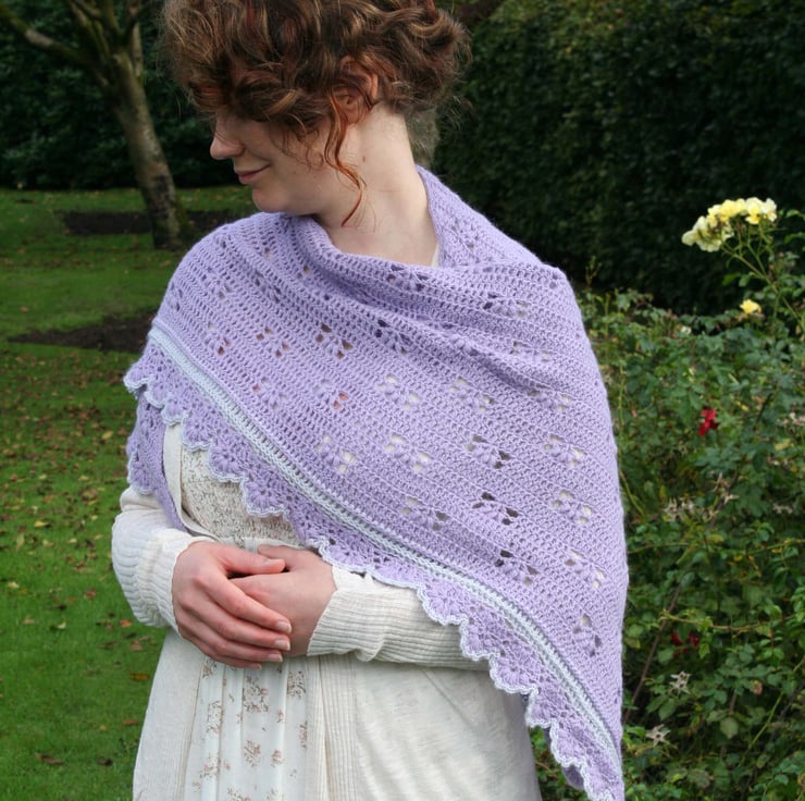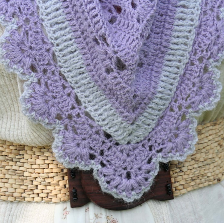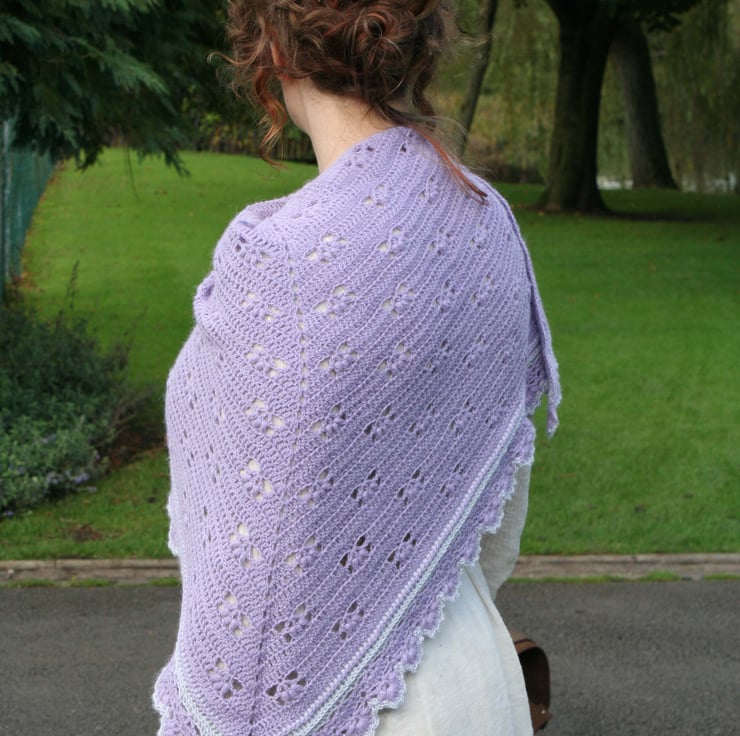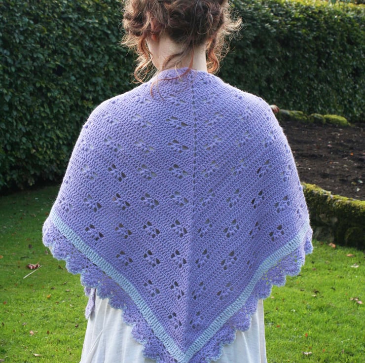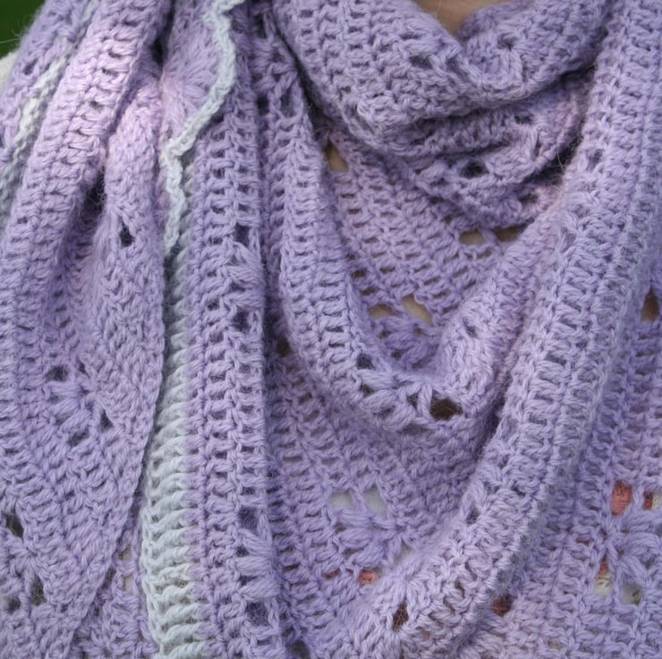 This crochet shawl can be worn in many different ways; It can be worn over the shoulders in the traditional way or around the neck like a large scarf or, in my favourite way, draped across the shoulders for a more modern look. This is a beautiful shawl and will be a very elegant accessory any way it's worn.