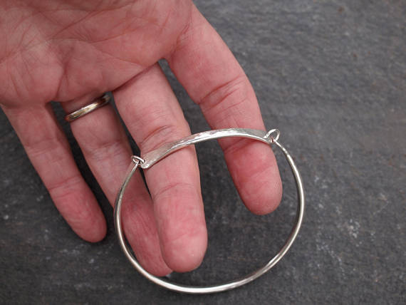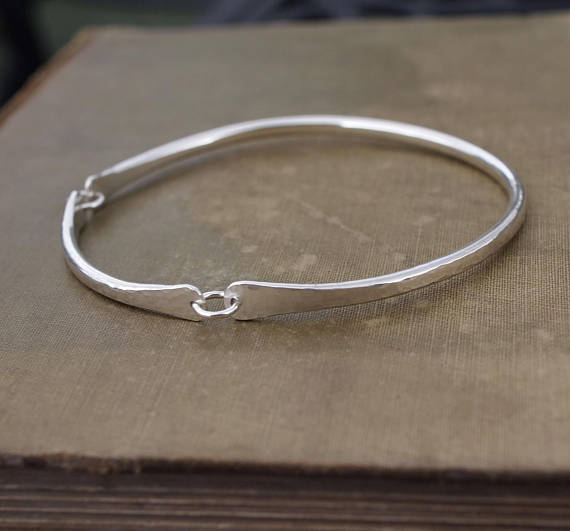 The forged bar moves slightly making a lovely tinkly sound as the bangle moves around the wrist.