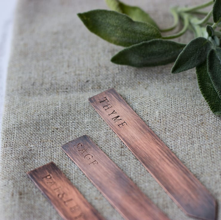 Set of 3 copper markers. Each marker is handstamped with your choice of herb, please write which 3 herbs you would like in the message box at the checkout.