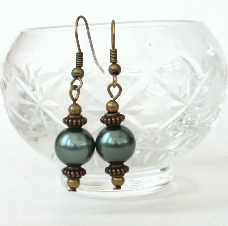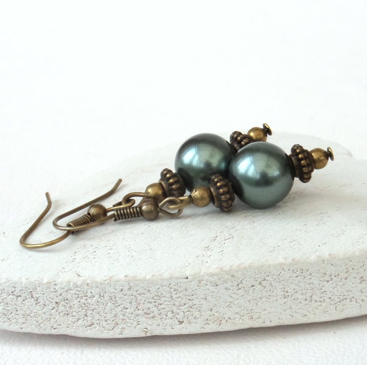 A great combination of forest green shell and bronze make for a stunning pair of earrings.