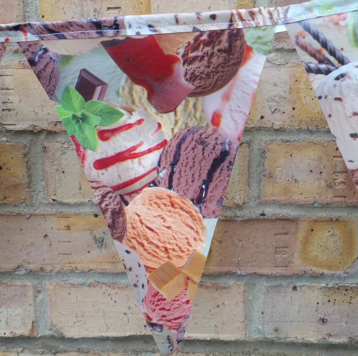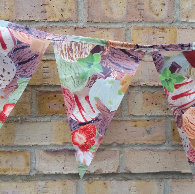 It has 16 triangles which have a depth of 11.5". The bunting measures 130" / 3m40cm in total.
