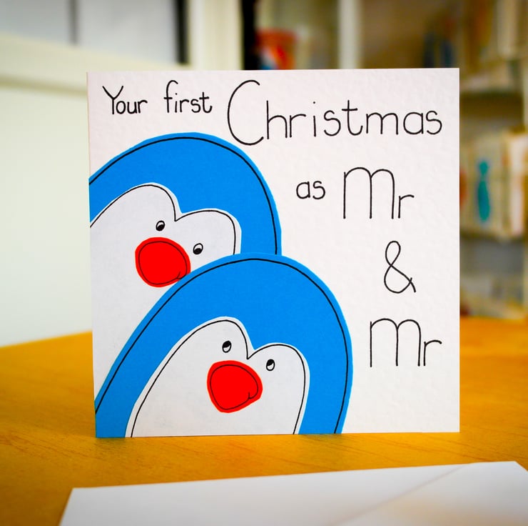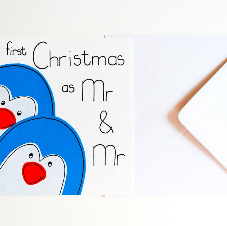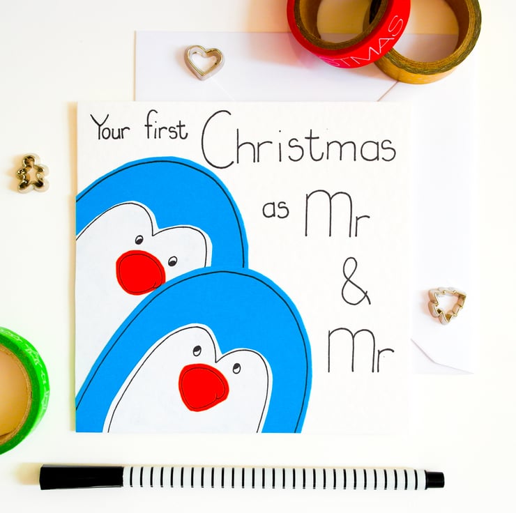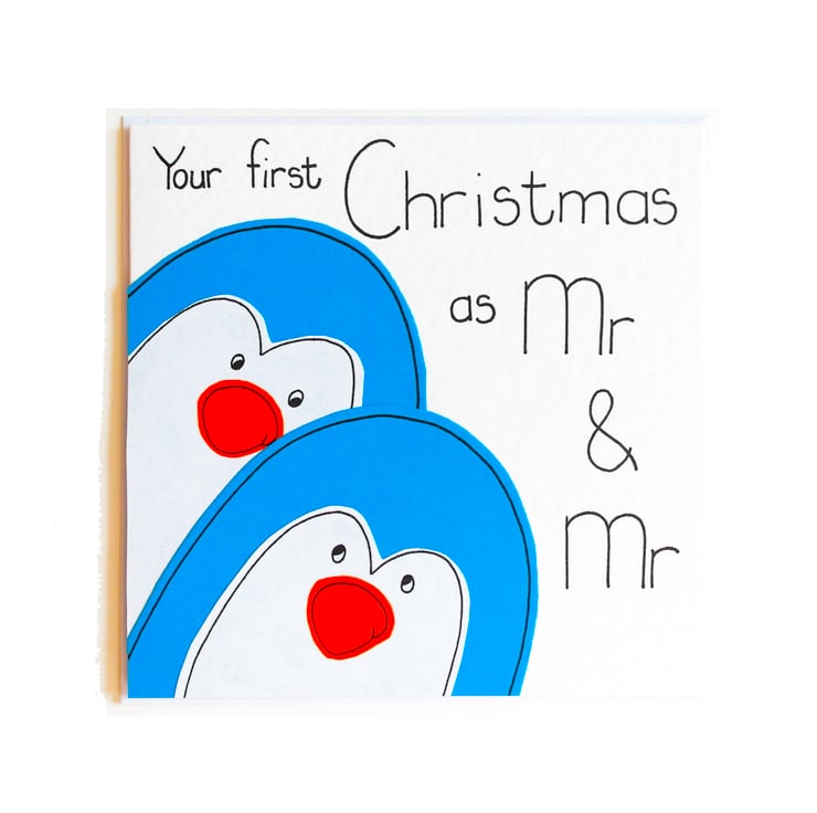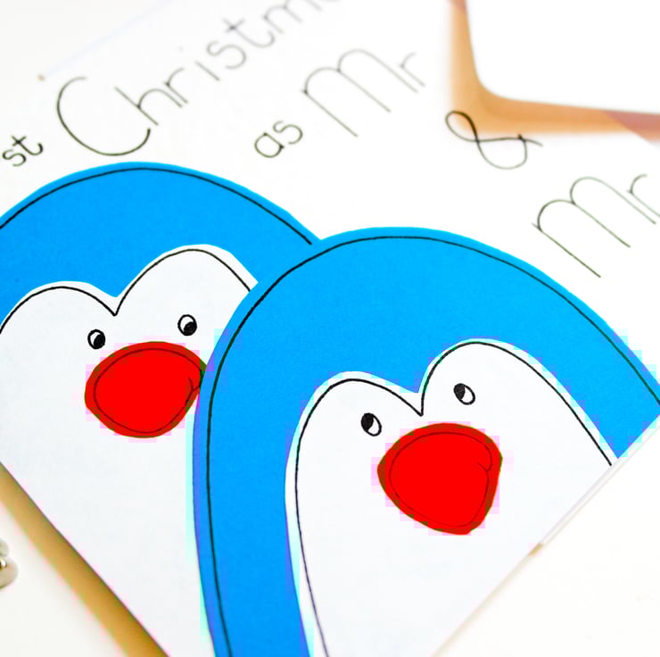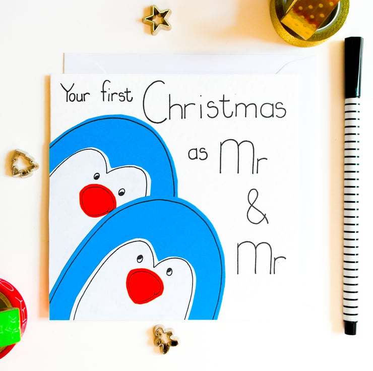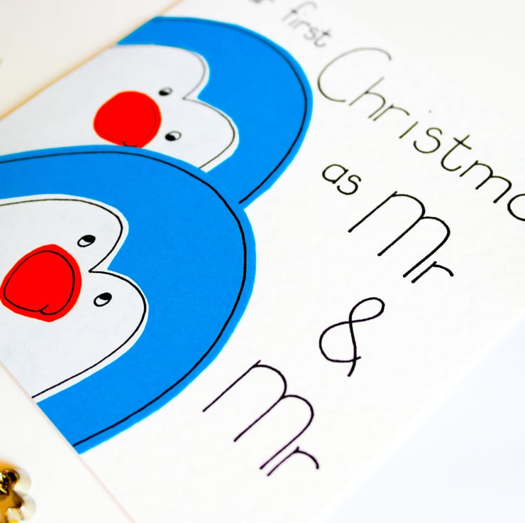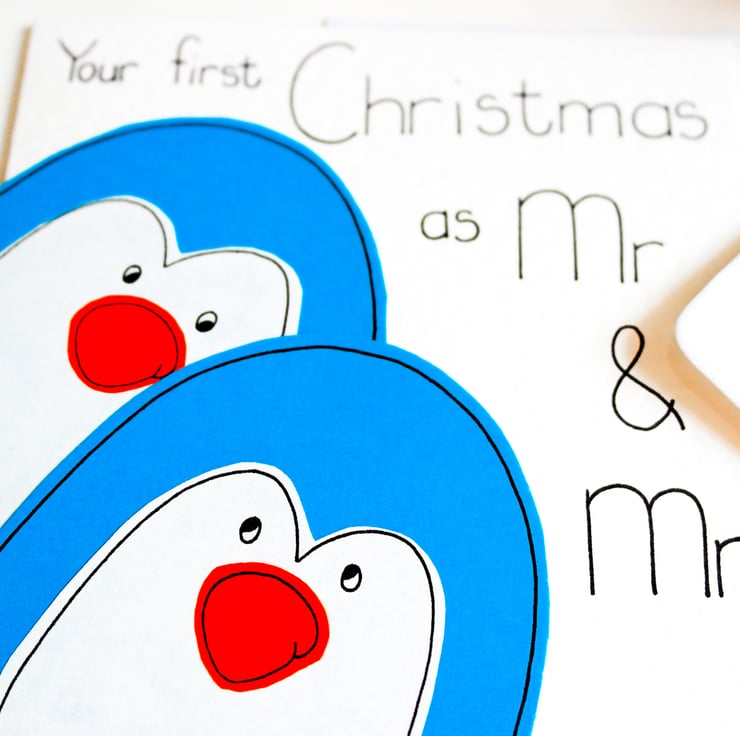 An ideal card to celebrate a first Christmas as Mr and Mr with this cute handmade penguins card. This is a perfect Christmas card to send to family or friends on their first Christmas as a married couple.