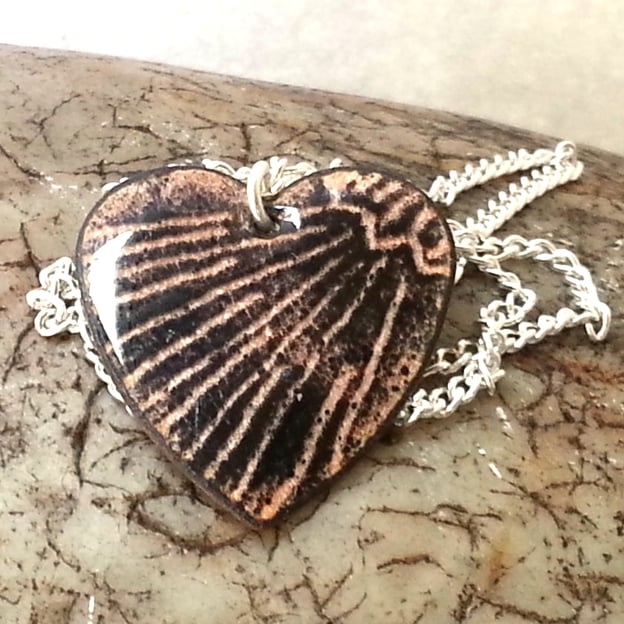 This heart measures 23mm by 25mm. It is mounted on a 45cm silver plate, curb chain that fastens with a simple bolt ring.