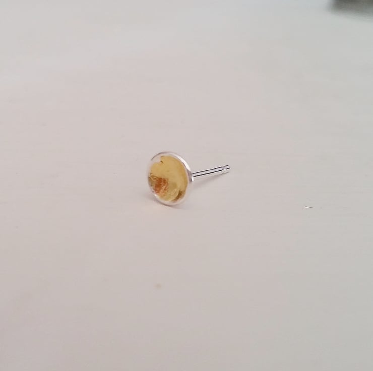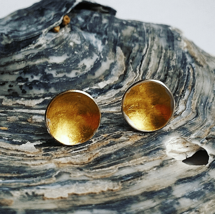 A single handmade sterling silver stud earring lined with rich warm 24 ct. gold.