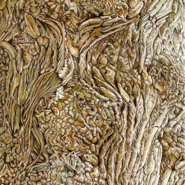 In a series of drawings inspired by the beauty of the textures and colours of tree trunks, I have focussed in on these sometimes complex details, revealing an overlooked world of natural wonder.