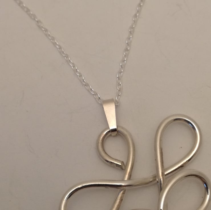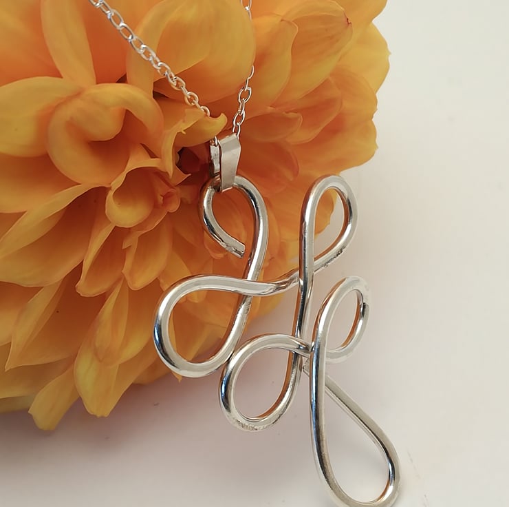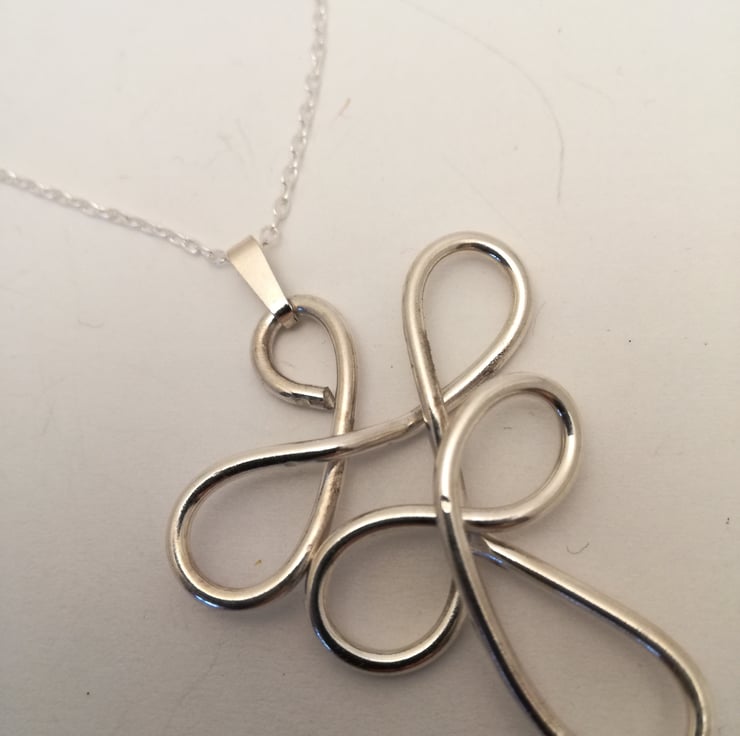 This sterling silver design was created while I was having fun just experimenting with curves, loops and fun shapes. I have also made earrings to match, just smaller with slightly narrower wire. It is hung on a good quality silver chain.