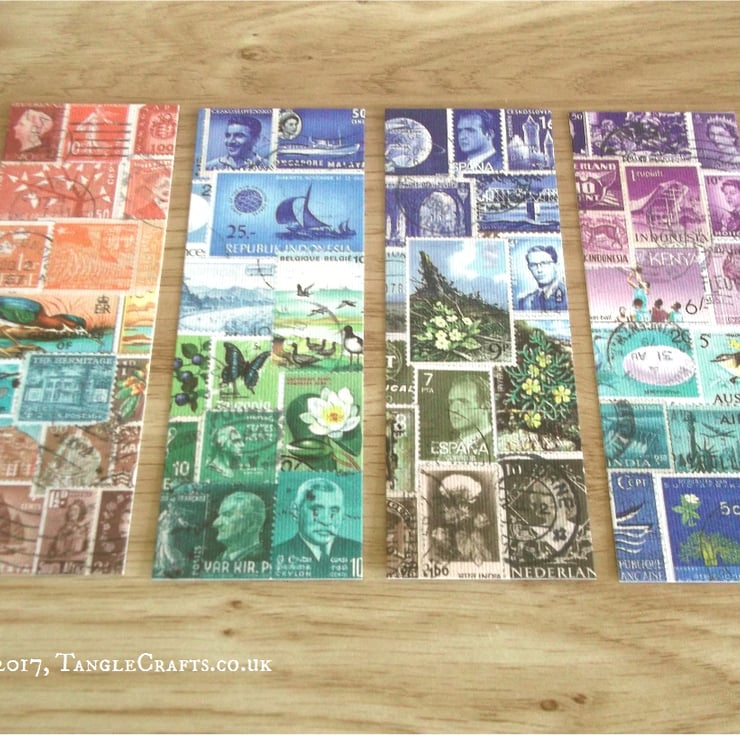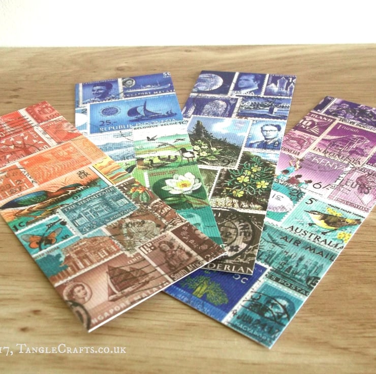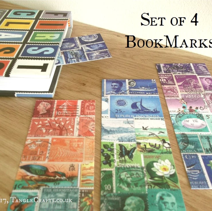 Set of 4 Postage Stamp Bookmarks - Mixed Collage Print Designs