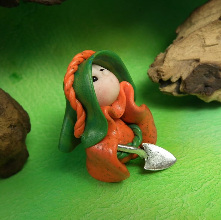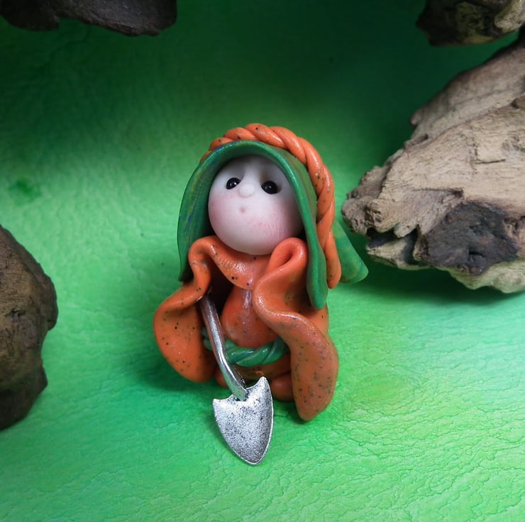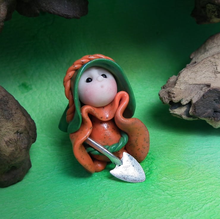 This is a 'one of a kind' creation having been entirely handmade without the use of moulds here at my studio on the Sussex Coast. Modelled with Prosculpt polymers, painted with heat set paints before sealing with lacquer, Moley has sparkling black onyx eyes. Moley the Gardener is just one and a half inches tall.