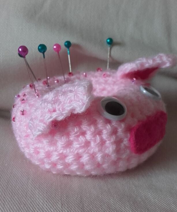 Pig donut pin cushion, Pink pig pin cushion, Piggy dough nut, crocheted pig