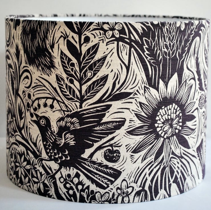 Handmade Drum lampshade in Squirrel & Sunflower, a single colour pattern, designed by Mark Hearld and produced in the UK by St Jude's. I am extremely pleased to be working with St.Jude's, producing lampshades using their wonderful fabrics.