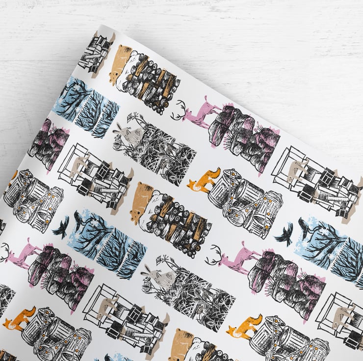 This lovely gift wrap is a pattern featuring all of my Winter Drifts animals. It has a wintery feel rather than specifically Christmas so you can use it for Winter birthdays as well!