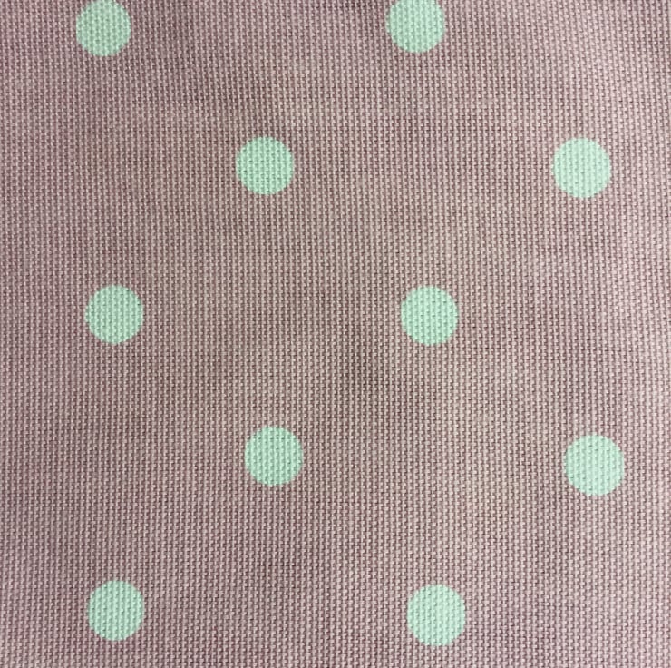 The pale pink lining in a hard wearing cotton has a white spot design and the pale pink zip complete the look. The lining consists of a layer of interfacing and fleece interfacing to give softness and structure.