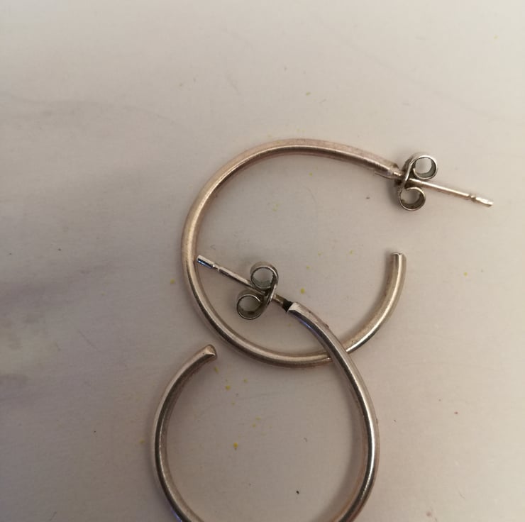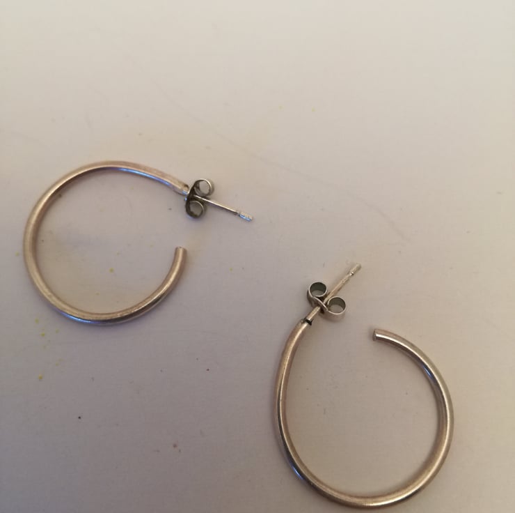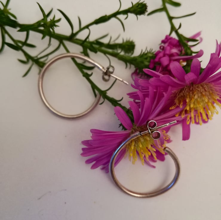 I love the clean lines and the matt finish of satined silver. The graceful shape elegantly flows from the ear and is so suitable for a number of different sorts of outfit. I am, as always, inspired by the countryside, and so often one sees flowers and petals just coming out of a circular bud, opening gracefully. These earrings are like a circle opening up.
