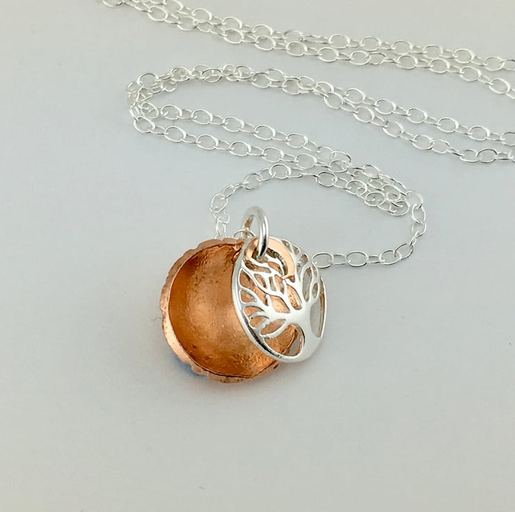 A copper & silver Tree and moon pendant necklace.