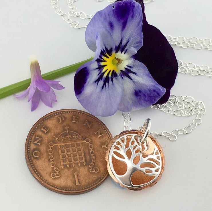 This is a dainty everyday piece of jewellery, its is hand cut from copper and silver sheet metal using an old fashioned piercing saw, and traditional metalsmithing techniques.