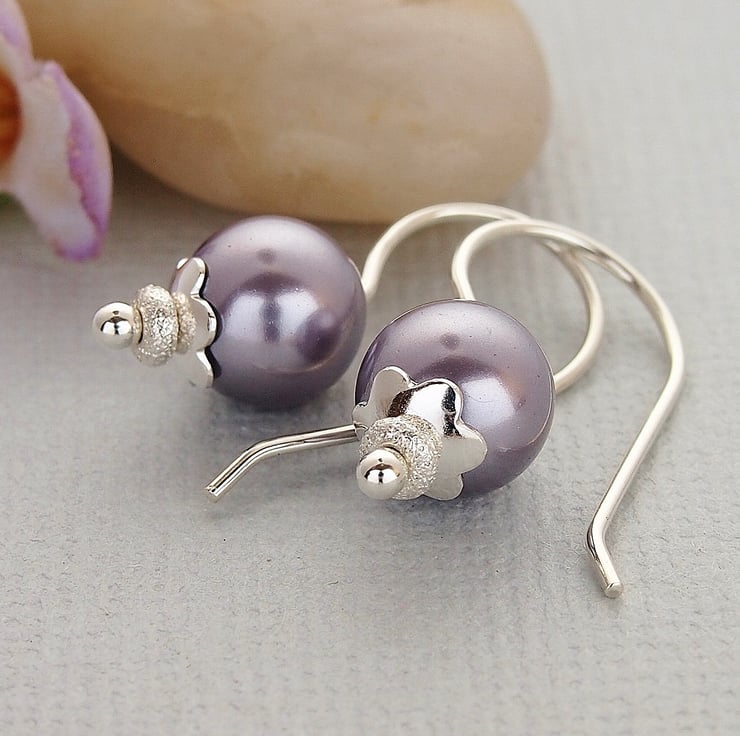 Beautiful earrings featuring Mauve Swarovski glass pearls.