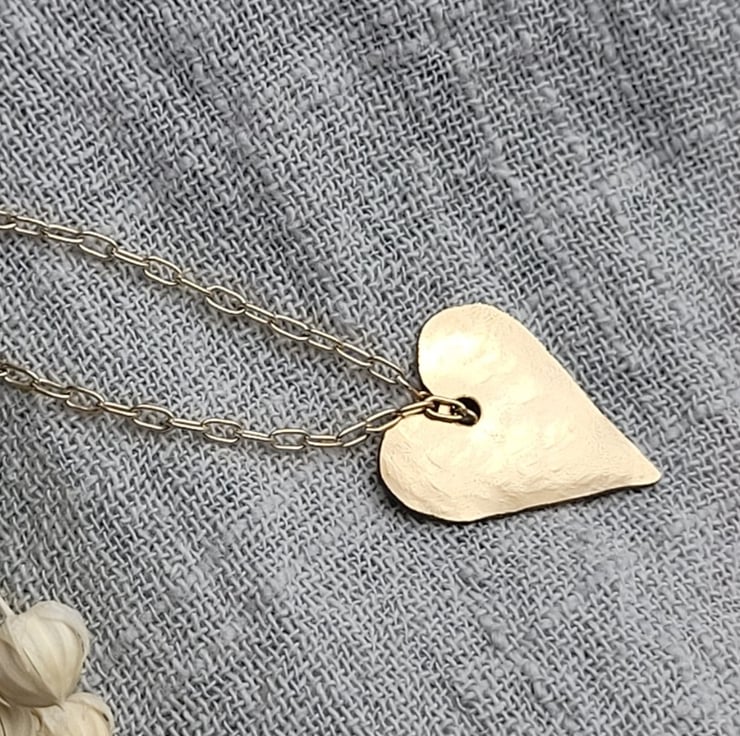 This stunning yet simple heart pendant is made using Gold filled metal. I have lightly textured the heart which heart is 2.8 mm long and 2.4 mm wide and is suspended from a 18 inch gold filled chain. The perfect piece that is appropriate for both work and evening wear.