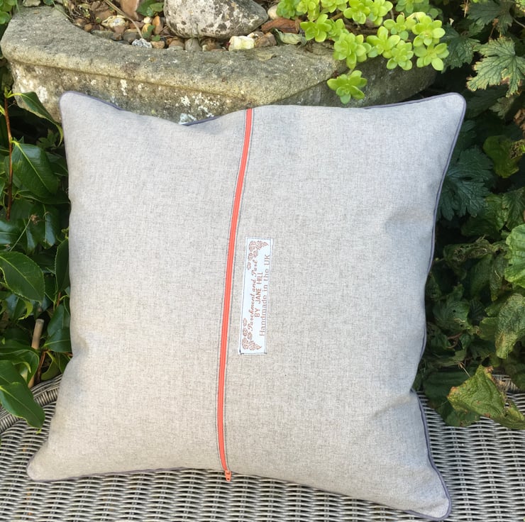 The cushion measures approx 46 cms/ 18 inches square and comes with a duck feather filled cushion insert.