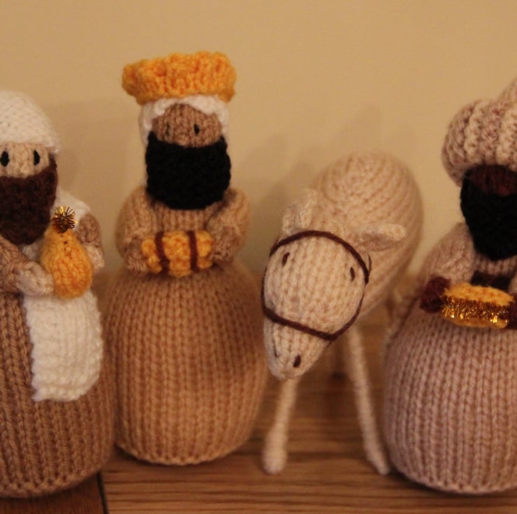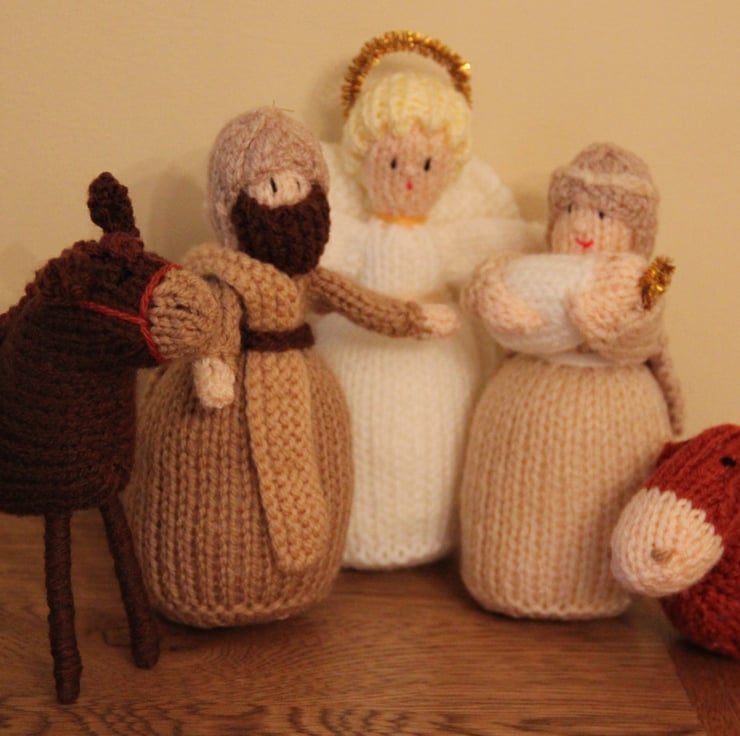 This is a gorgeous Christmas 'Knitivity' with all they key players present - Mary & Joseph, the Baby Jesus, the Donkey and Ox, the 3 Kings and their Camel, the Shepherds with their flock (well, two of the sheep anyway!) and the Angel Gabriel.