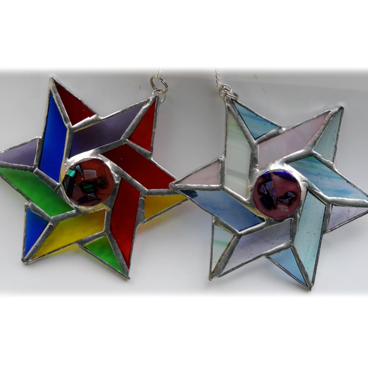 The 4th photo shows this star together with a rainbow version also for sale as a separate listing. The 5th photo shows 6 other coloured stars, now sold but they give you an idea of the colours I can make.