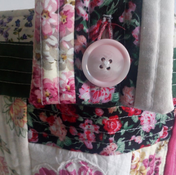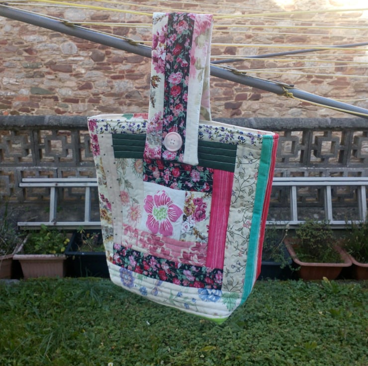 A quilt as you go peg bag that will brighten your wash days.
