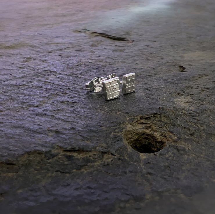 Little 4 mm recycled sterling silver square stud earrings Brick design