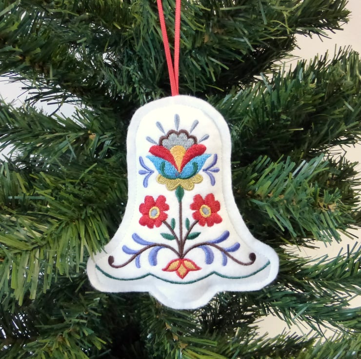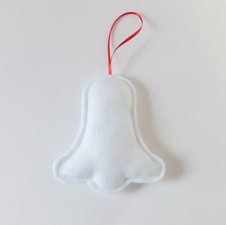 It measures approximately 5.50" (14 cm) tall and 5" (13 cm) wide at the widest point. It hangs from a ribbon which is approximately 4" (10 cm) long.