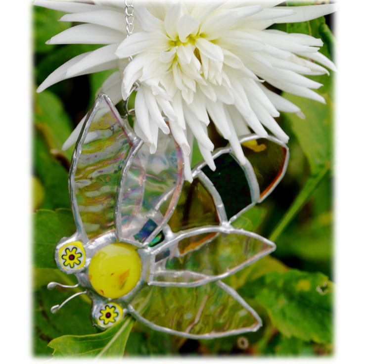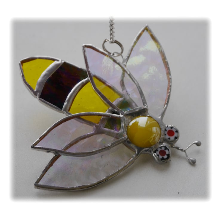The bee hangs from a little silver chain which is securely attached to the top of the bee.