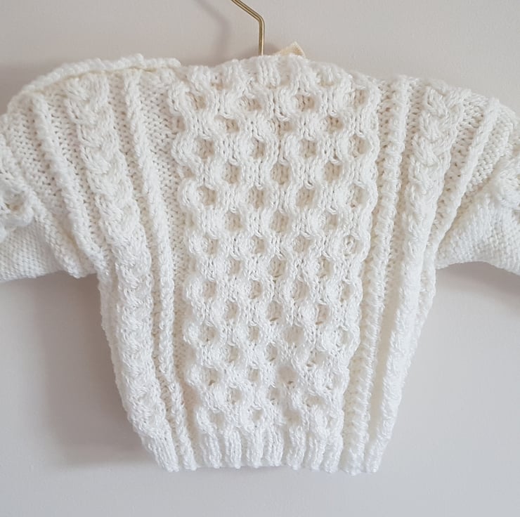Hand Knitted in white Aran Yarn. Cosy and warm.