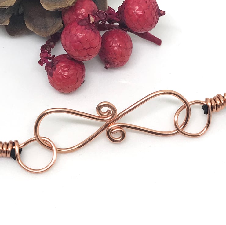 The pendant is completed with a black leather necklet with handcrafted copper findings and clasp to match the pendant.