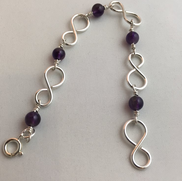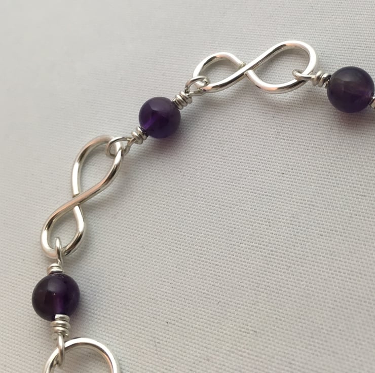 Sterling silver infinity links with round amethyst beads.