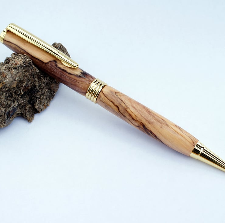 This pen was handturned by me in my workshop in suffolk, the metal parts are gold finish, Included in the price is a black card presentation box & Protective velvet sleeve