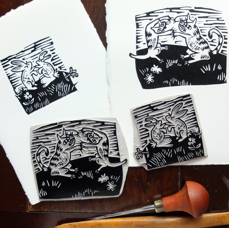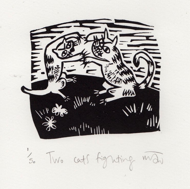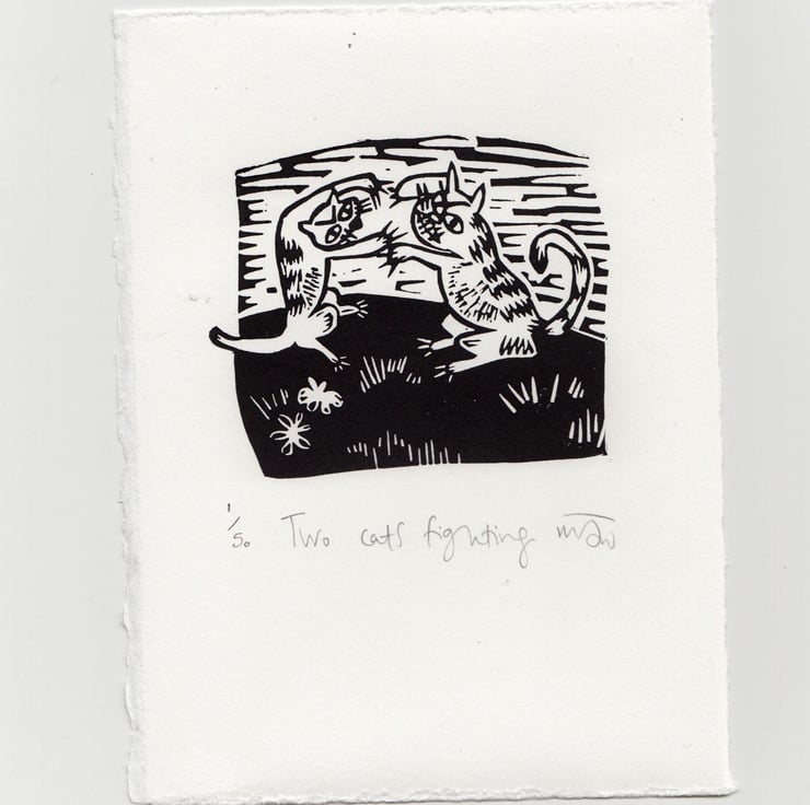 Each print is numbered and signed. The image size is 8 cm x 9.5 cm. The listing is for an unframed lino cut and it will arrive wrapped in cellophane and backed with card - ready to give to a cat loving friend!