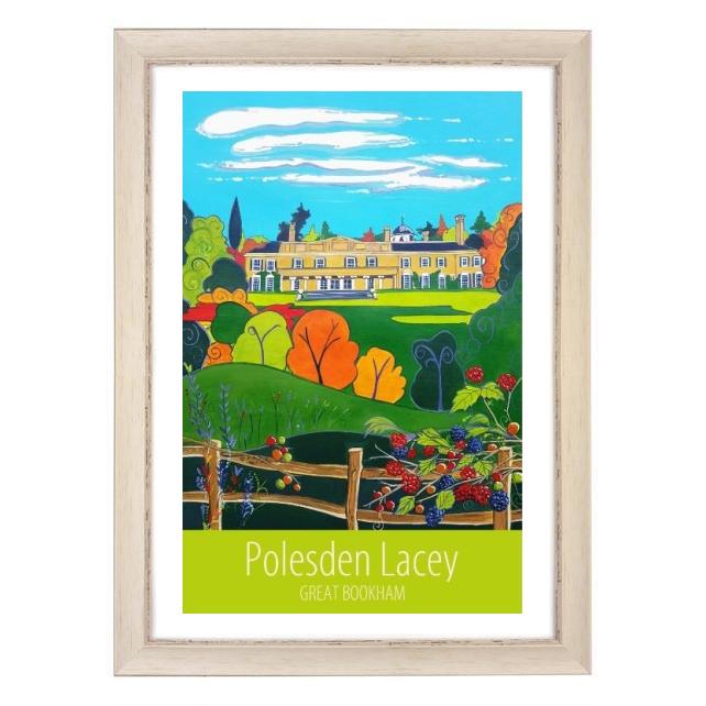 A contemporary travel poster style print of the view across the estate to the National Trust -owned Polesden Lacey house, in Great Bookham, Surrey, (a favourite place of mine!) from my own original acrylic painting.