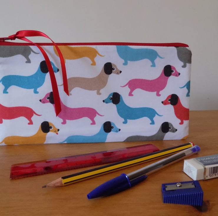'Sausage Dog' Dachshund Fabric Pencil Case Animal Make Up Cosmetics Bag
