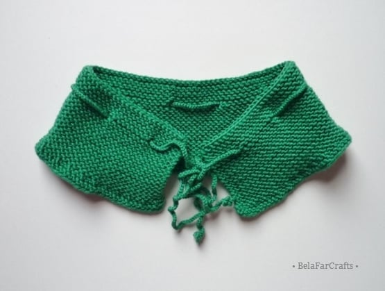 I hand knitted this piece in 100% merino wool in a bright, cheerful green colour. Its approximate size is: 7.5cm (3in) wide :: 39cm (15.5in) around the neck :: 49cm (19cm) around the ruffle.