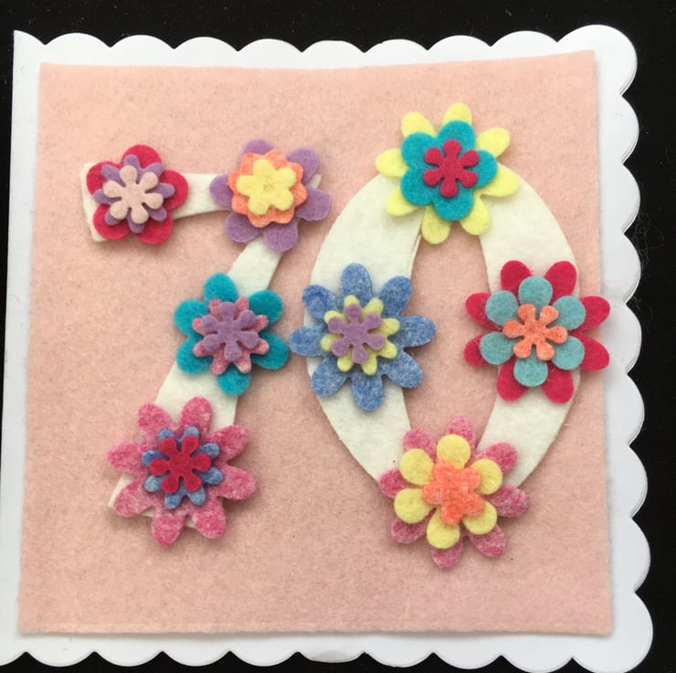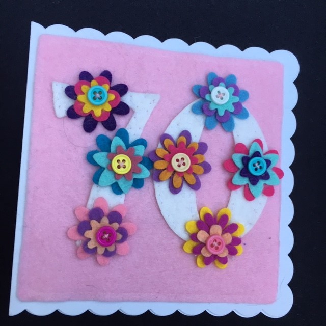 A lovely felt floral 70th birthday card