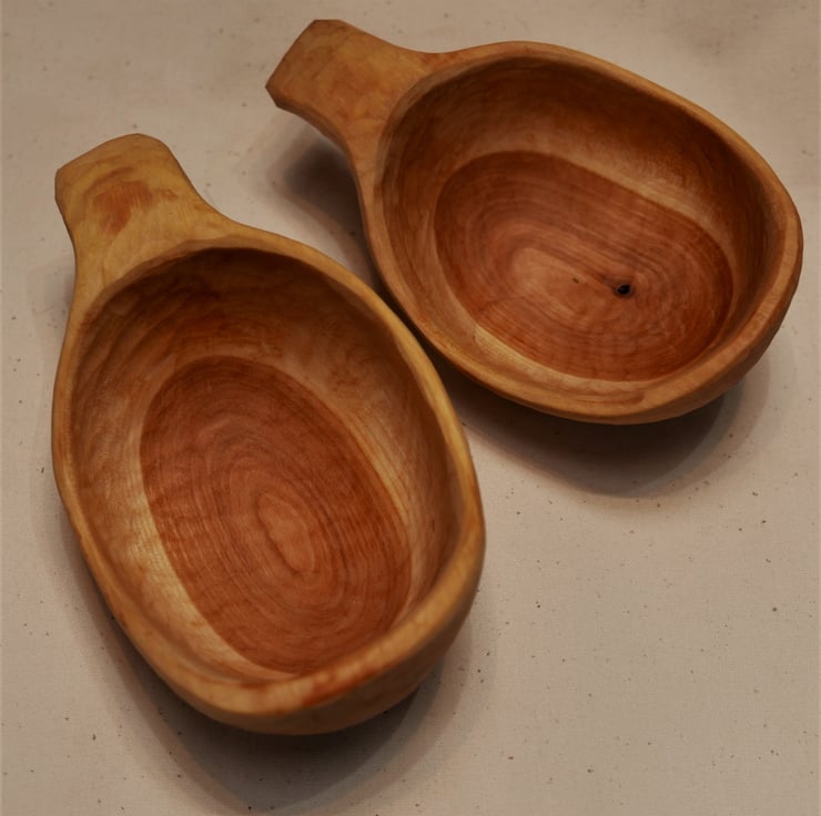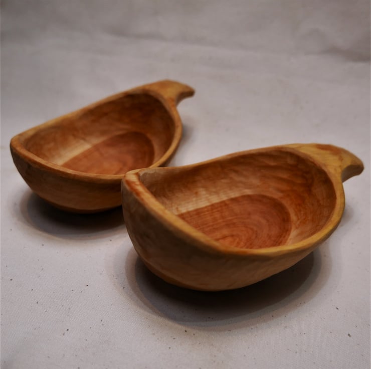 Based on the northern Scandinavian kuska design these two smallbowls would be ideal for serving olives, nuts or chutneys or as outdoor utensils for drinks.