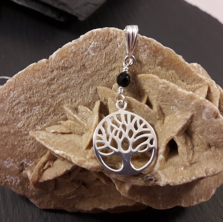 Made to match my tree of life and black agate adjustable bracelet. This simply beautiful sterling silver pendant currently includes a 4mm faceted black agate but is available with most birthstones instead to customise it and give it greater meaning, most will be the same price, please contact me for a quote. The Tree of Life is a classic symbol of family, Nature and Longevity. It is currently on a very fine 18in chain, 16in or less delicate chains can be substituted. The pendant hangs 4.5cm from the chain.