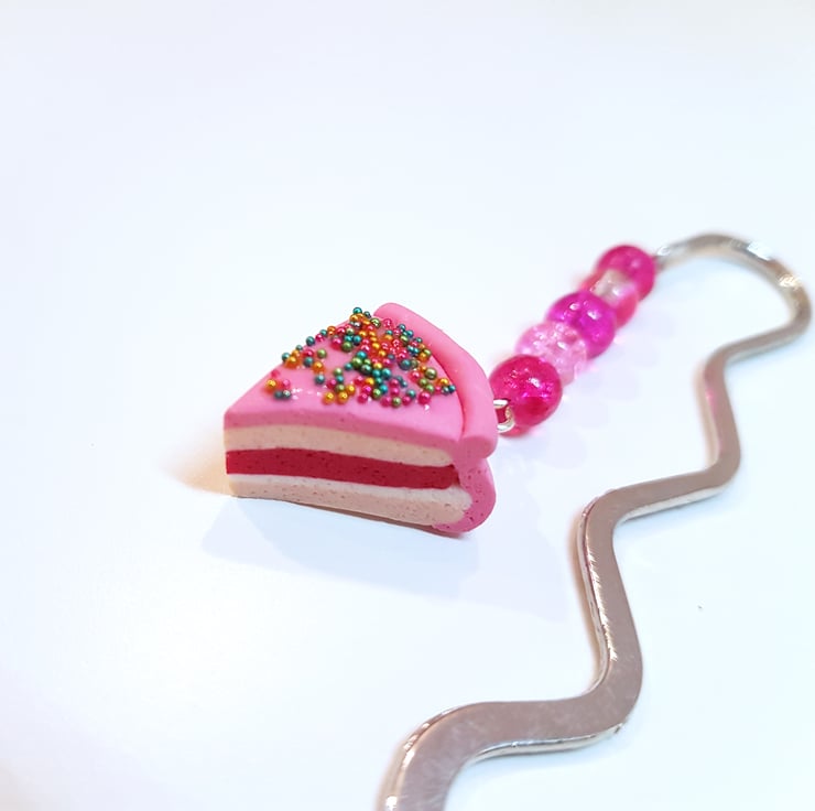 Retro pink cake slice bookmark Quirky, fun, unique, handmade, novel