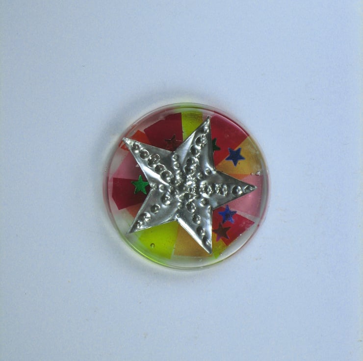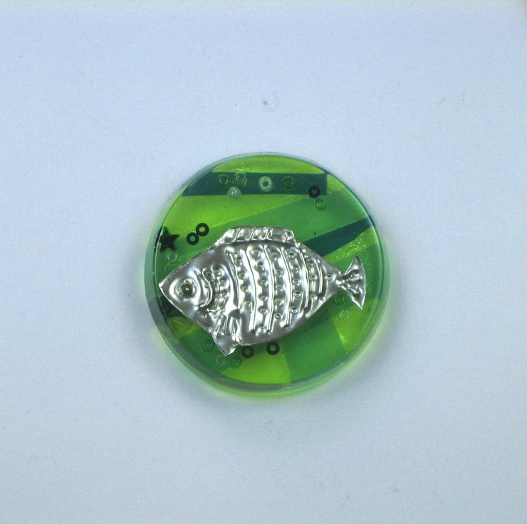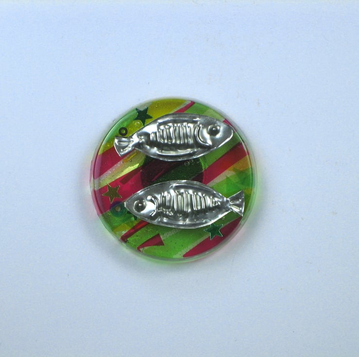 Three little fishes and a starfish, made from hand embossed pewter shapes and resins.