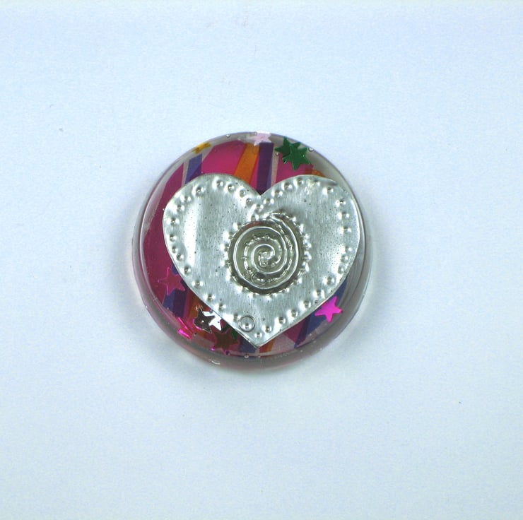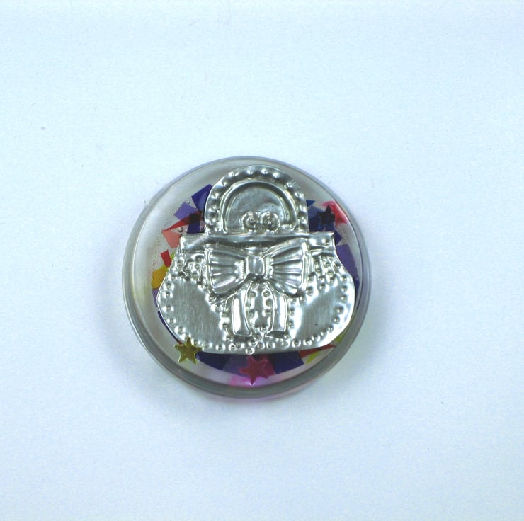A fun little novelty gift for a woman who loves shopping, this set of fridge magnets depicts a shoe, a handbag and a heart made from hand-embossed pewter set in crystal resin. Sprinkled with star confetti and backed in coloured cellophane, this gift set in unique and not available anywhere else.