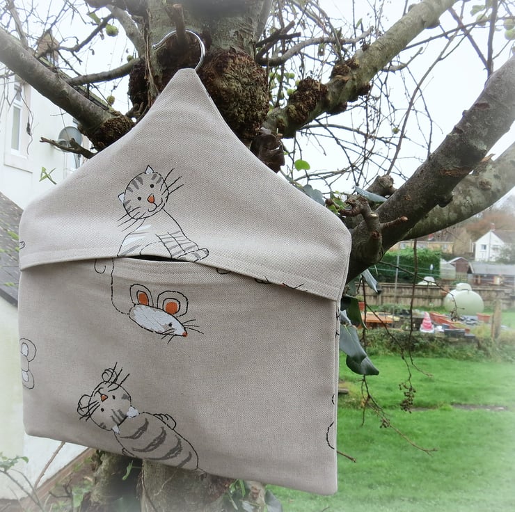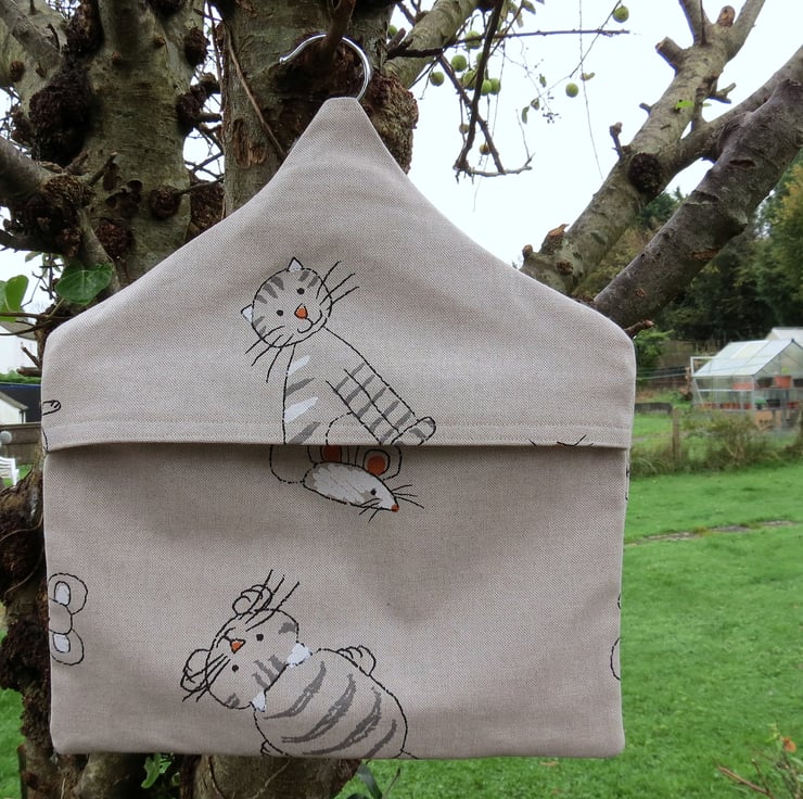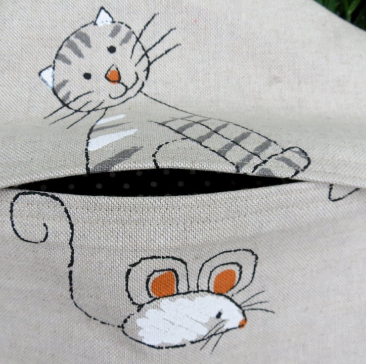 It is made from a medium weight cotton fabric, with a whimsical cats design.
