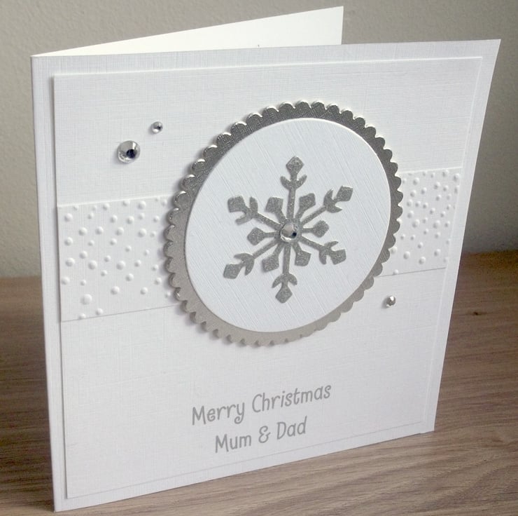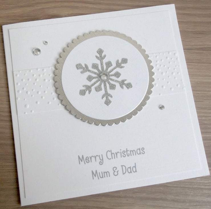 Handmade Christmas card, snowflake, personalized, add your own message, mum, dad, daughter, son, brother, sister, auntie, grandma, grandad