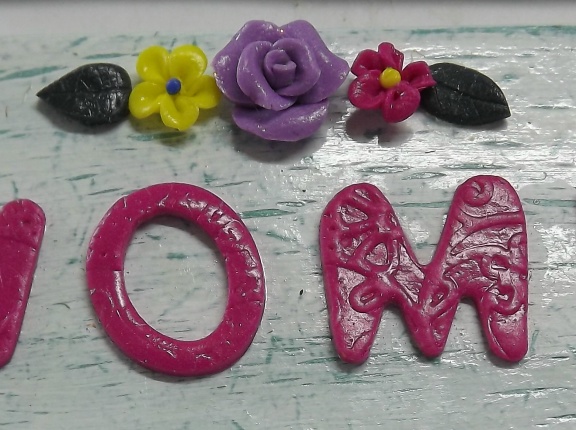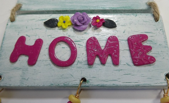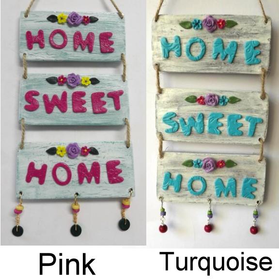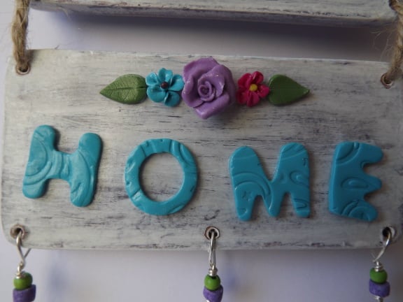 This pretty plaque has been made with a rustic distressed paint finish, I have then added handmade polymer clay flowers and textured clay letters, it is available with plum, turquoise, coral or pink letters, please choose from the options box.