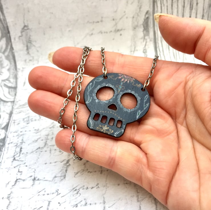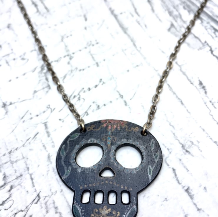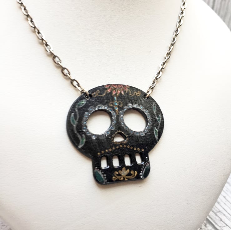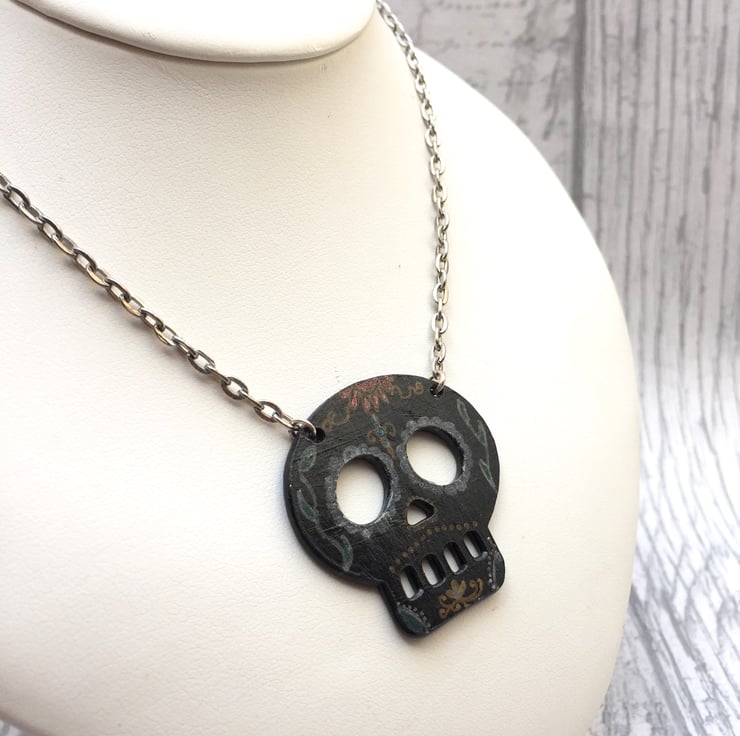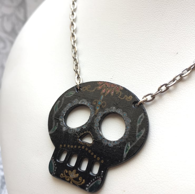 Day of the Dead Sugar Skull style pendant with decorative doodle design