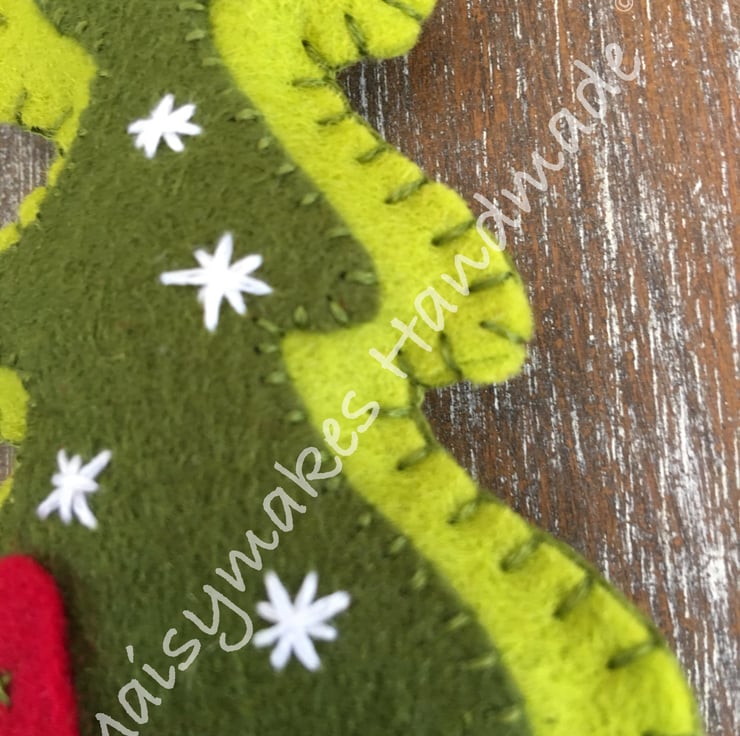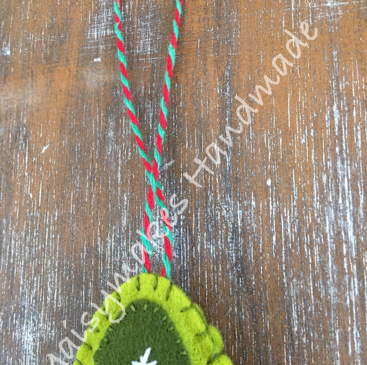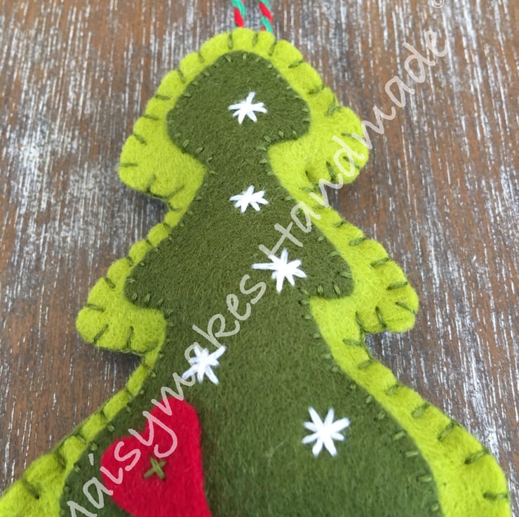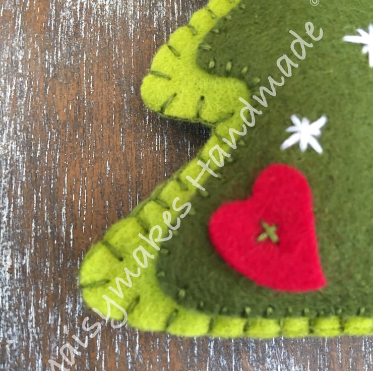 This Delightful Felt Christmas Tree has been designed from my own original hand drawn image, and has been made completely by hand by myself. It is made from 100% wool felt and has a string loop attached for ease of hanging. This unique item would be perfect on your Christmas Tree or as a Hanging Decoration in your home.