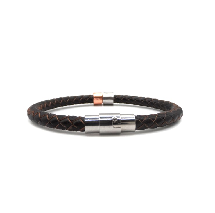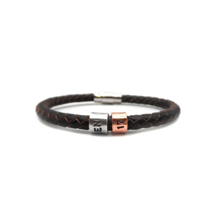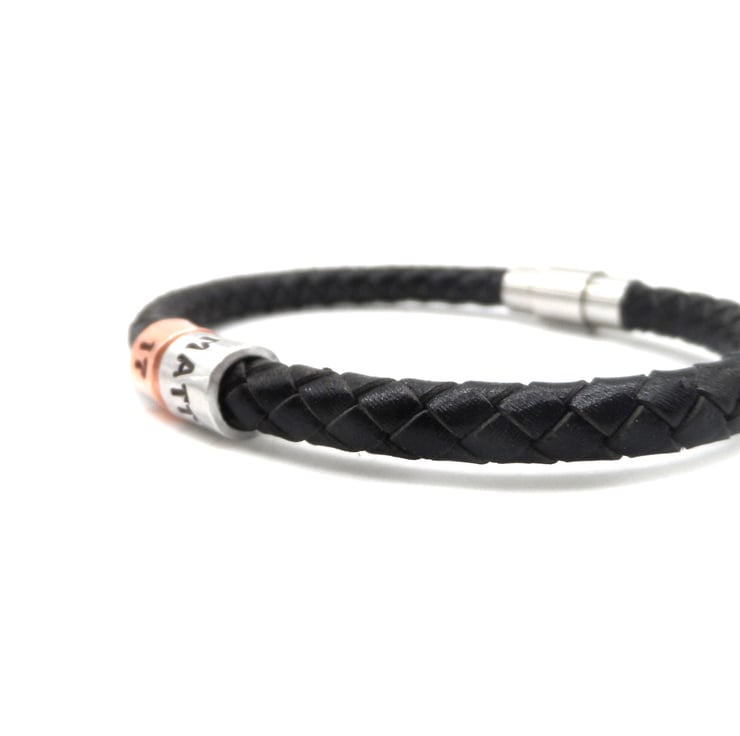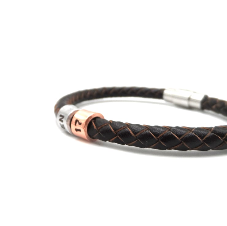 The personalised 17th Birthday leather bracelet is made with genuine braided leather that is 6 mm in diameter and has a locking stainless steel connector that ensures that it will not come undone.